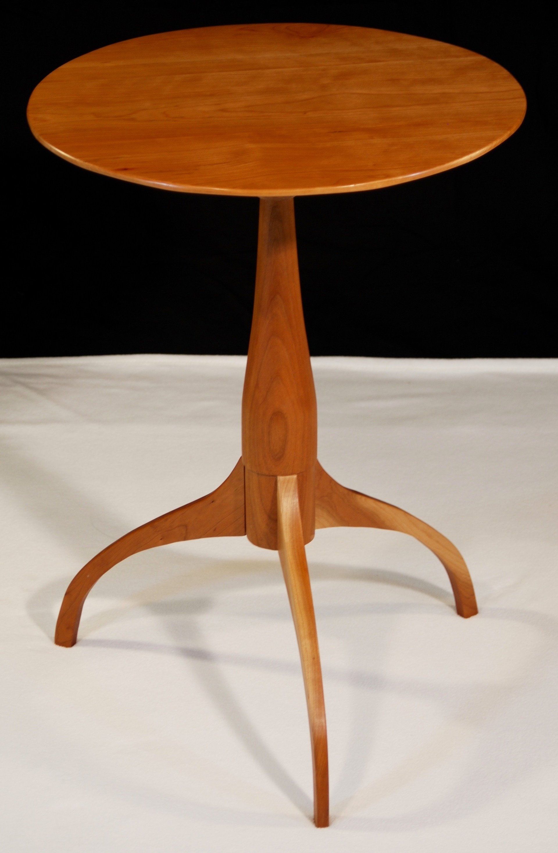 Our small tables cover a lot of territory. They are generally 25" tall and about 20" in width/diameter. They range from Shaker reproductions to highly figured burls to inlaid designs. One of the things that we can do for you is to build a table of the exact dimensions that you need.