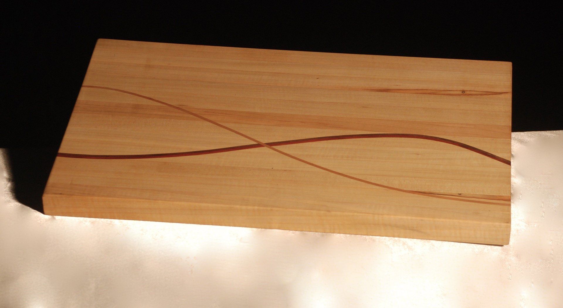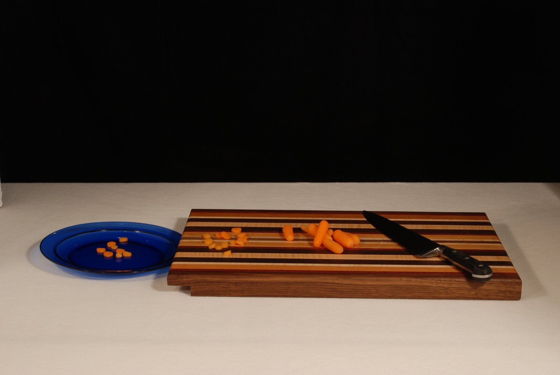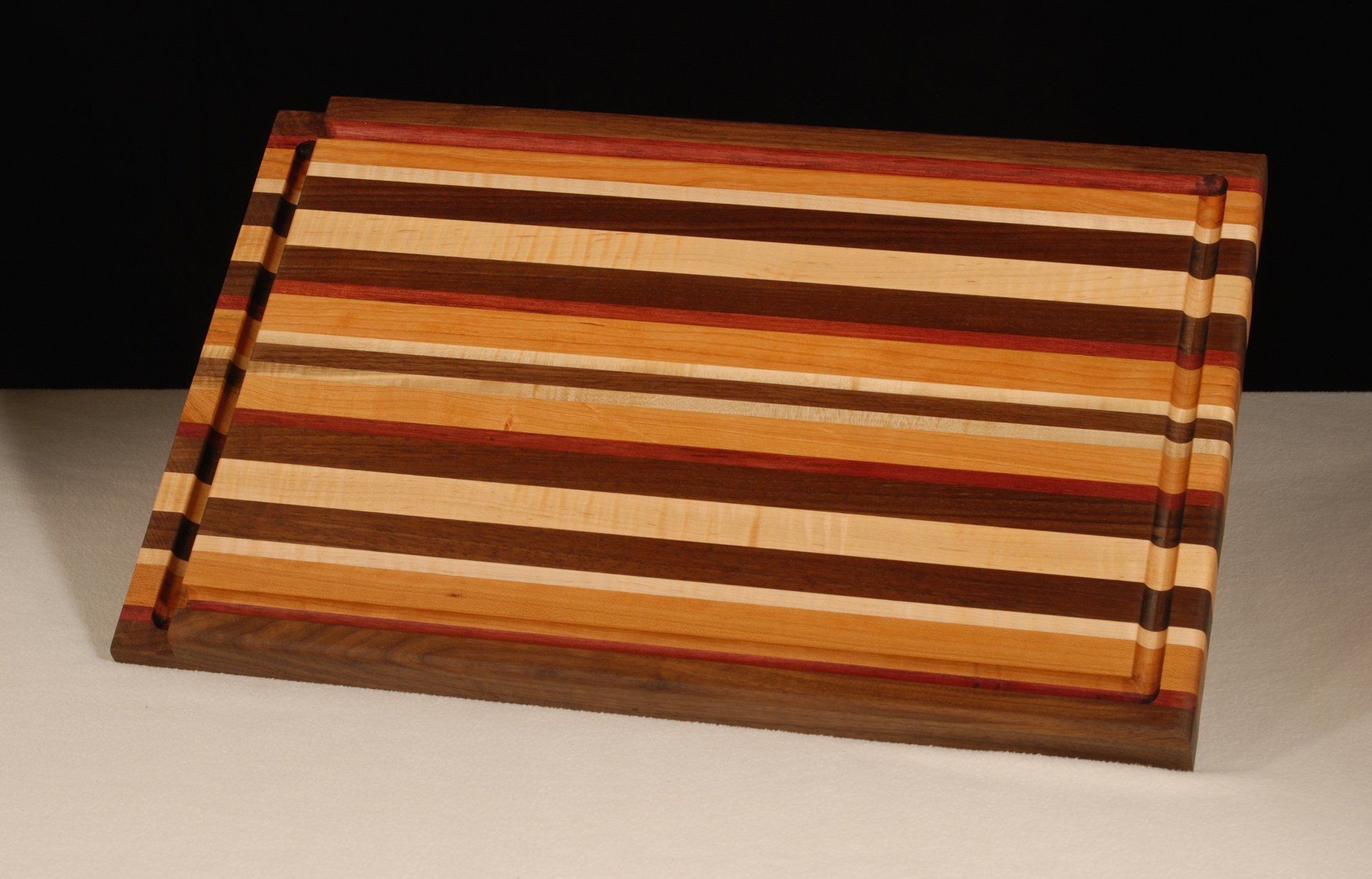 We make cutting boards in various styles and sizes. The prices range from $20 for a small cheese board, $60 for the standard board, $100 for the large premium board to $120 for the inlaid board and the recessed board. Sizes range from 6.5" x 10.5" to 12" x 20". The recessed board is very popular as you can slide a plate under the edge and avoid a mess.